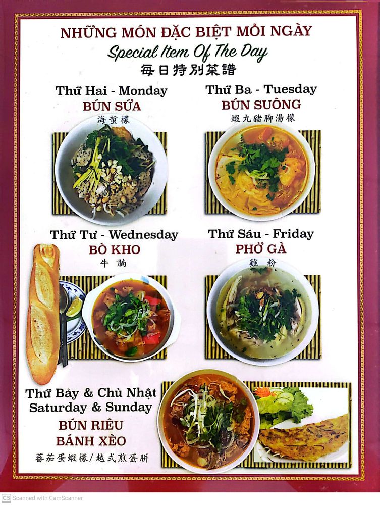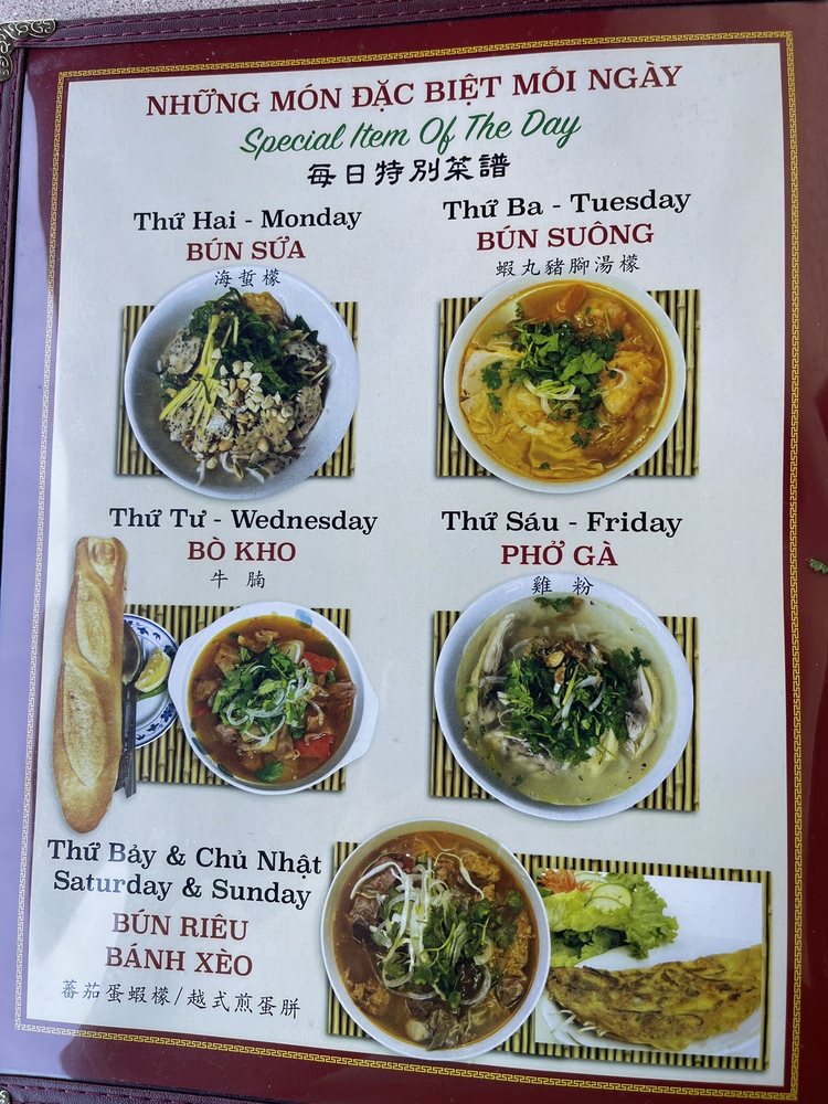 Welcome to Thanh Thai Restaurant, a delightful gem nestled in Monterey Park, CA, renowned for its authentic Vietnamese cuisine. The menu offers a rich tapestry of flavors, featuring specialties like Bun Bo Hue and Mi Quang Nam, both showcasing bold spices and fresh ingredients. At just $12.00, the Bun Bo selections are a must-try, delighting your palate with savory broth and tender noodles. For a more casual bite, the Banh Mi sandwiches, available from $7.00, blend crisp bread with vibrant fillings, perfect for a quick lunch.