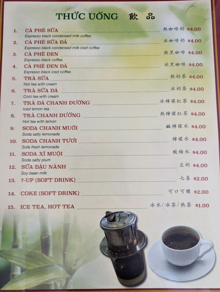 Beverages are equally enticing, with options like Ca Phe Sua and refreshing fruit teas to complement your meal. Customers rave about the friendly atmosphere and helpful staff, making each visit feel personal. The constantly evolving daily specials keep patrons returning for more delicious surprises. Thanh Thai Restaurant isn’t just a meal; it’s an experience steeped in tradition and warmth.